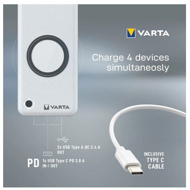 VARTA Portable Wireless Powerbank 20000mAh Silver