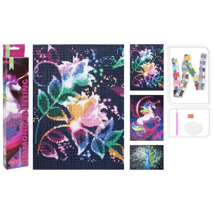 Radošais komplekts Dimantiņi neona krāsās ir spilgts un aizraujošs rokdarbu komplekts, kas ļauj izveidot krāšņus mākslas darbus ar mirdzošiem dimantiņiem. Neona toņi piešķir attēlam īpašu dziļumu un dzīvīgumu, padarot rezultātu iespaidīgu un enerģisku. Komplektā iekļauti dimantiņi, pamatne ar attēlu un nepieciešamie instrumenti ērtai pielīmēšanai. Izgatavots no izturīga polipropilēna materiāla, komplekts piemērots gan bērniem, gan pieaugušajiem radošas atpūtas brīžiem. Izmērs 30 x 40 cm.