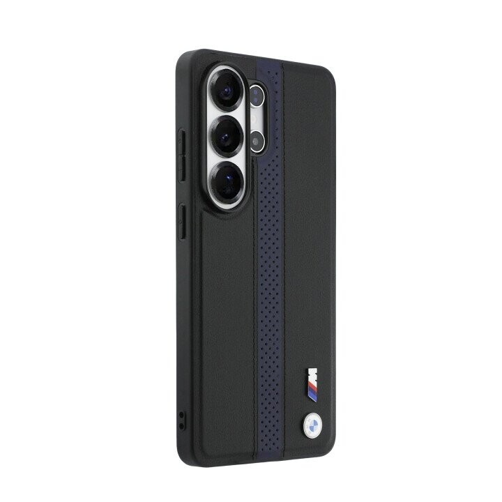 BMW M PU Leather Perforated Stripes and Metal Logo Magnetic Case for Samsung Galaxy S26 Ultra Blue