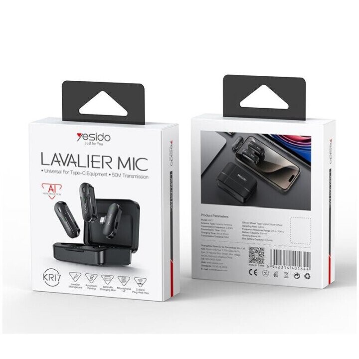 YESIDO KR17 MICROPHONE MEMS 2PCS WITH CLIP TYPE-C WIRELESS 2,4GHz BLACK