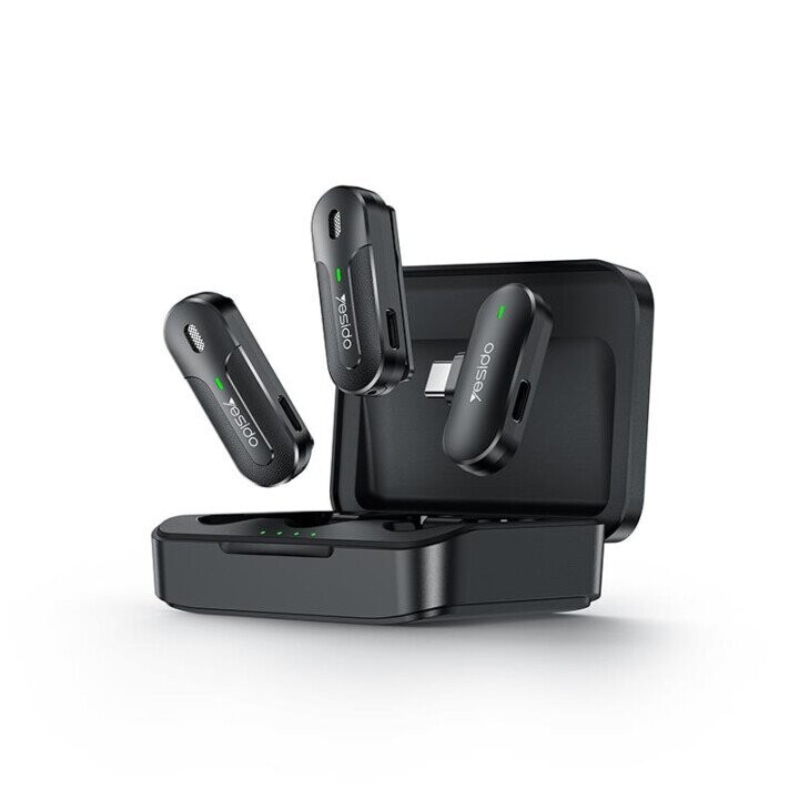 Wireless MEMS 2-in-1 microphones with receiver for Type-C KR17 from the Yesido brand are a professional audio recording tool, ideal for content creators, journalists, vloggers, and presenters. The kit includes 2 MEMS Lavalier microphones, which can operate simultaneously, providing high sound quality. They operate at 2.4 GHz, which guarantees a stable and reliable connection. Each microphone is equipped with a 70 mAh battery, enabling 8 hours of operation.