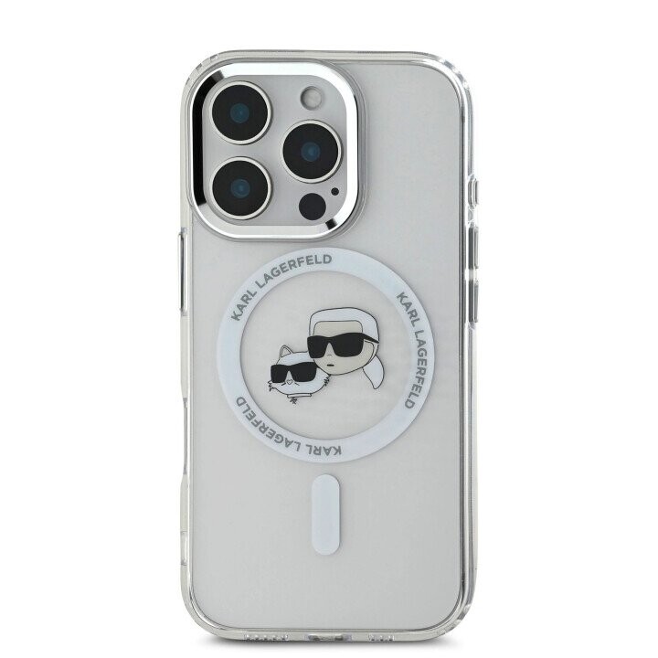 Karl Lagerfeld case for iPhone 16 Pro 6,3" KLHMP16LHLSKCH white Hard IML Metal Karl&Choupette Head MagSafe