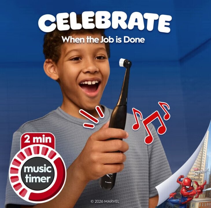 Oral-B Electric Toothbrush with Travel Case, 6Y+ | iO Kids Marvel Spiderman | Rechargeable | For kids | Number of brush heads included 1 | Number of teeth brushing modes 3