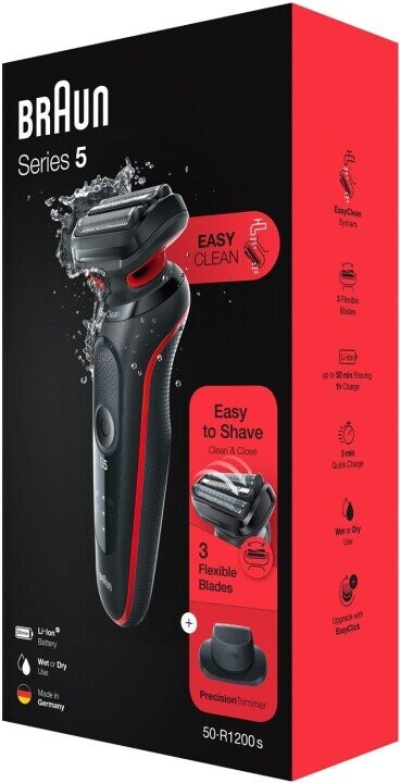 Braun Shaver 51-R1200s Operating time (max) 50 min, Wet & Dry, Black/Red