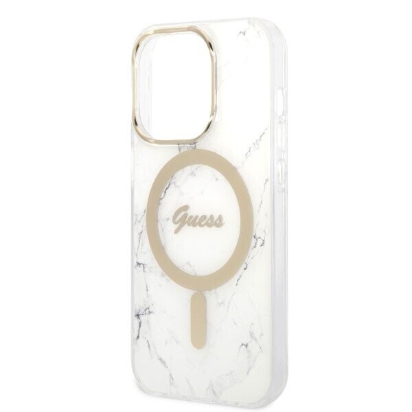 Zestaw Guess GUBPP14LHMEACSH Case+ Charger iPhone 14 Pro 6,1" biały|white hard case Marble MagSafe