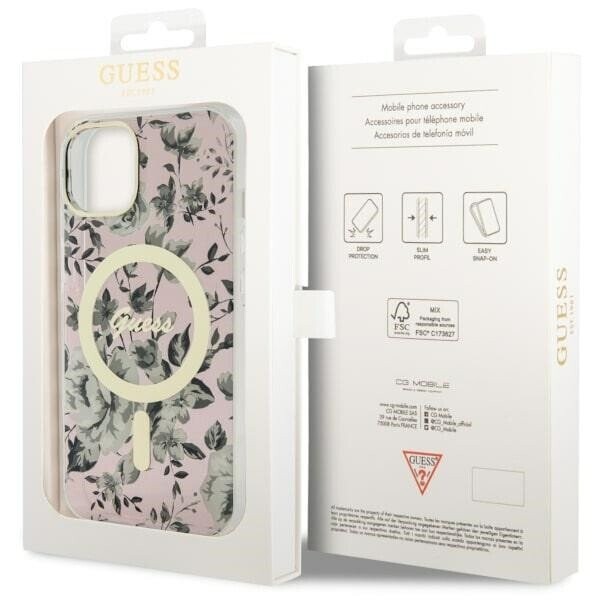Guess GUHMP14MHCFWSP iPhone 14 Plus 6.7" różowy|pink hardcase Flower MagSafe