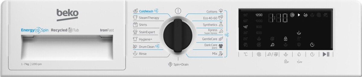 Beko B3WBT671415W Washing machine, Freestanding, Front loading, Washing capacity 7 kg, White