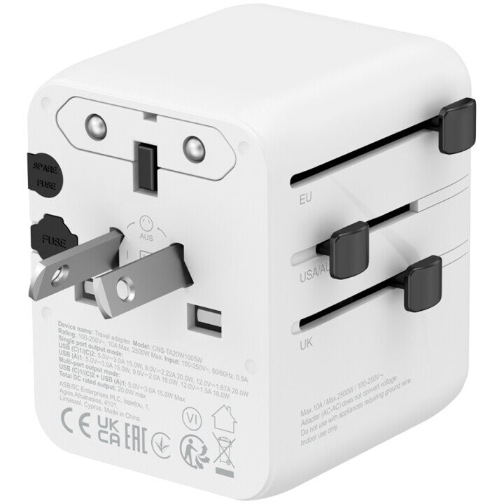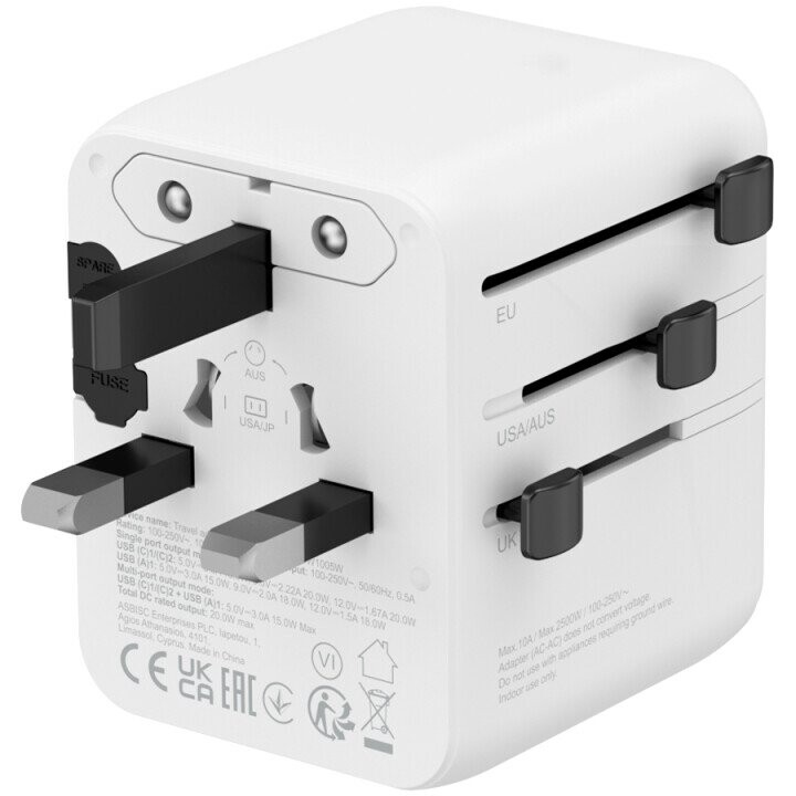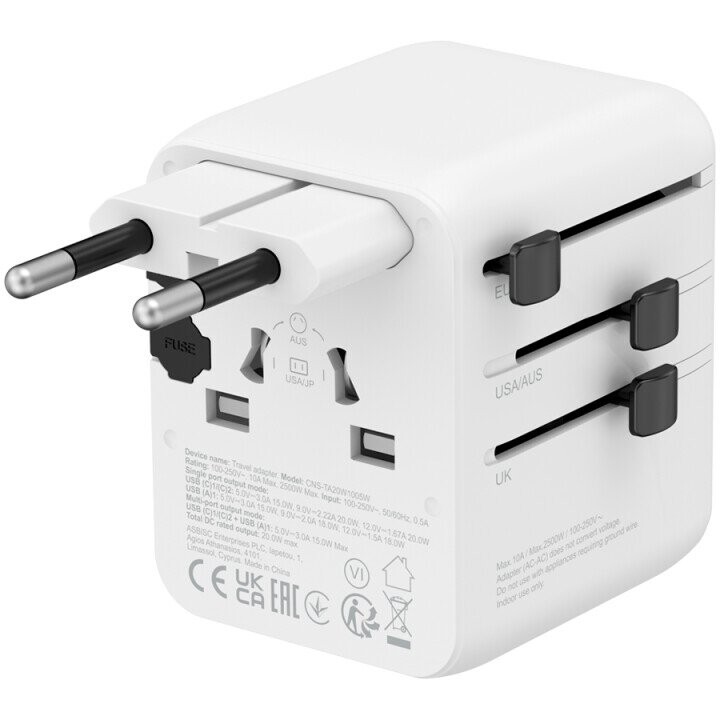 | Komerciālais nosaukums | CANYON Travel Adapter OnTour One EU/UK/US/AUS White |