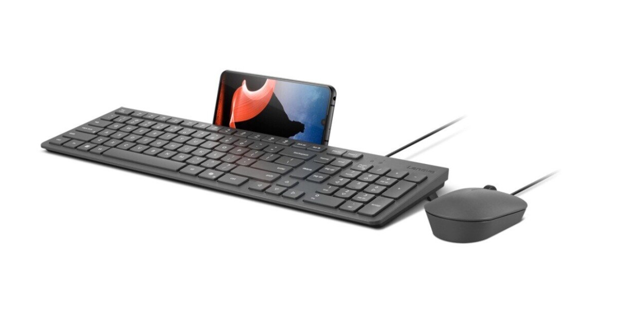 Lenovo Accessories 310 USB-A Wired Combo - US English | Lenovo Keyboard and Mouse | Wired with Phone holder | EN
