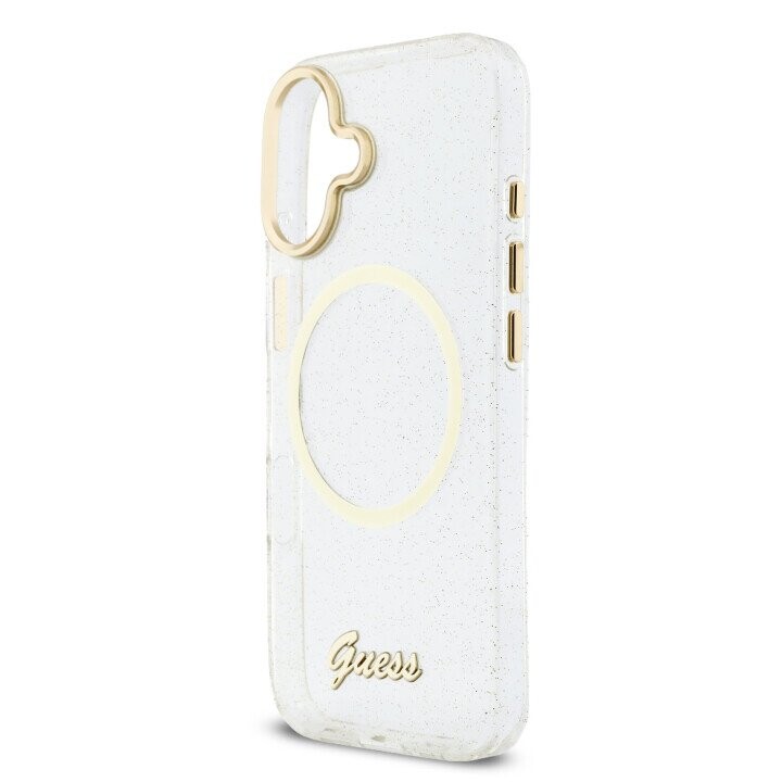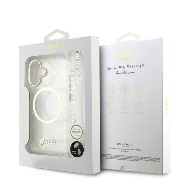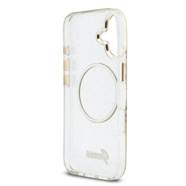 Guess IML Glitter Script Strap MagSafe Case for iPhone 17 Transparent