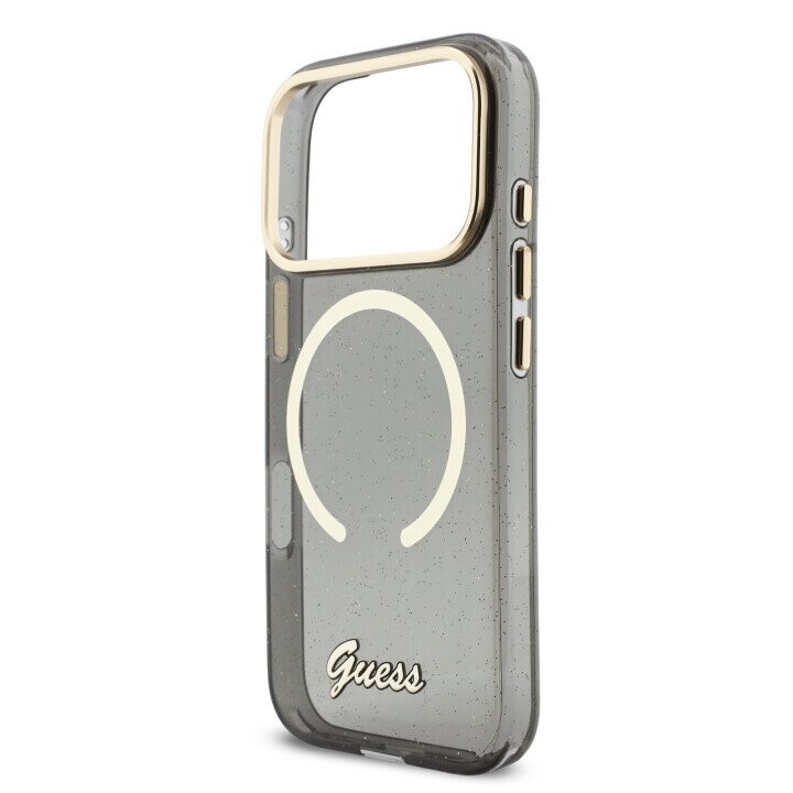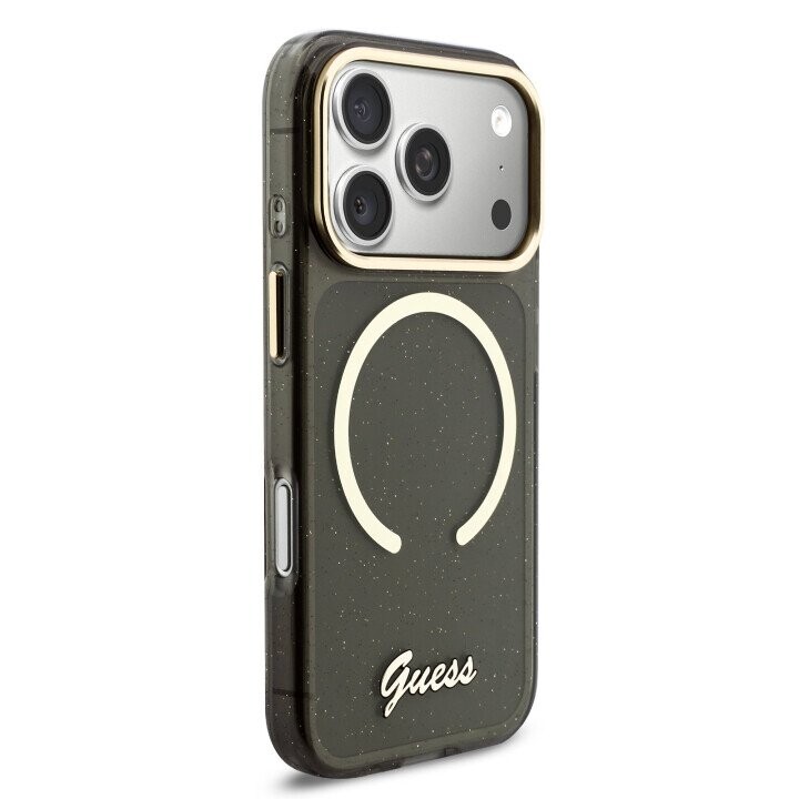 Guess IML Glitter Script Strap MagSafe Case for iPhone 17 Pro Black