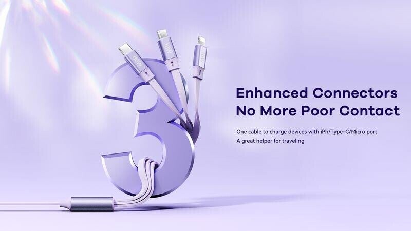 CABLE REMAX LINON SERIES 66W 3IN1 USB-C|MICRO|LIGHTNING RC-C029 PURPLE