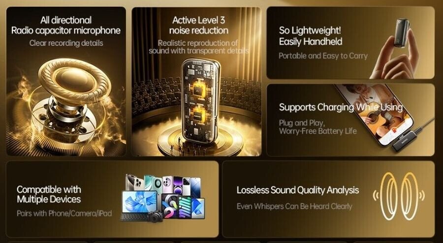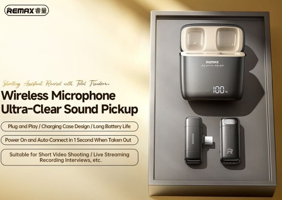 Meet the modern wireless microphone from Remax, which delivers exceptional recording quality and unparalleled user comfort. Equipped with a range of advanced technologies, this compact and elegant microphone is perfectly suited for a variety of applications—from filming, through video conferencing, to professional audio sessions. Advanced features:, Active three-level noise reduction: The microphone is equipped with advanced noise reduction technology.