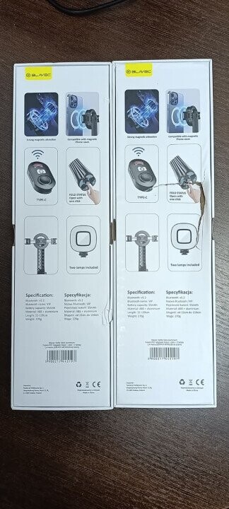 Blavec Selfie Stick Aluminium Fusion P-07 Magsafe tripod + remote control + 2 lamps 1,4 metres (SSFP07-MTR2LB14) black (damaged packaging)