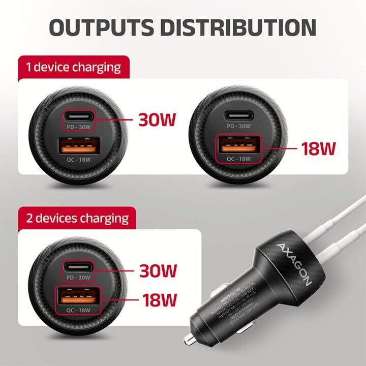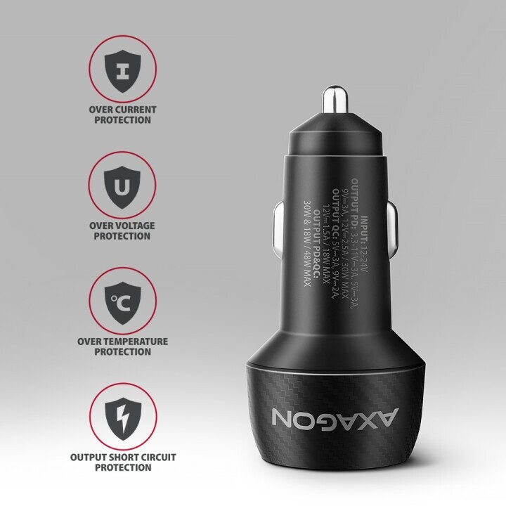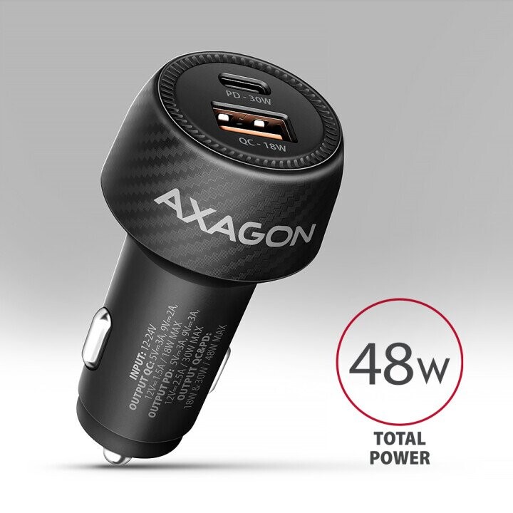 Axagon PWC-PQ48 PD3.0 & QC4+ 2xOUTPUTS car charger 48W